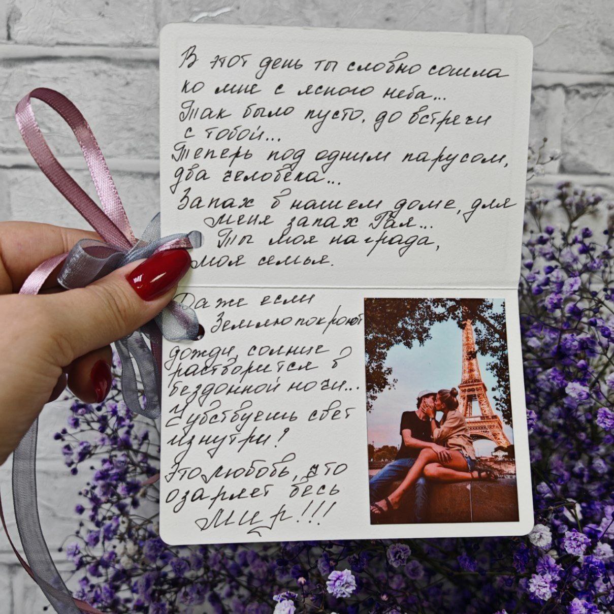 Теперь к букету или композиции мы можем прикрепить фото-открытку или фото-магнит. На долгую память о теплых моментах в вашей жизни:) Для заказа нужно скинуть нам фото, которое мы оформим в соответствии с Вашими пожеланиями! Для фото- открытки необходимо отправить текст!